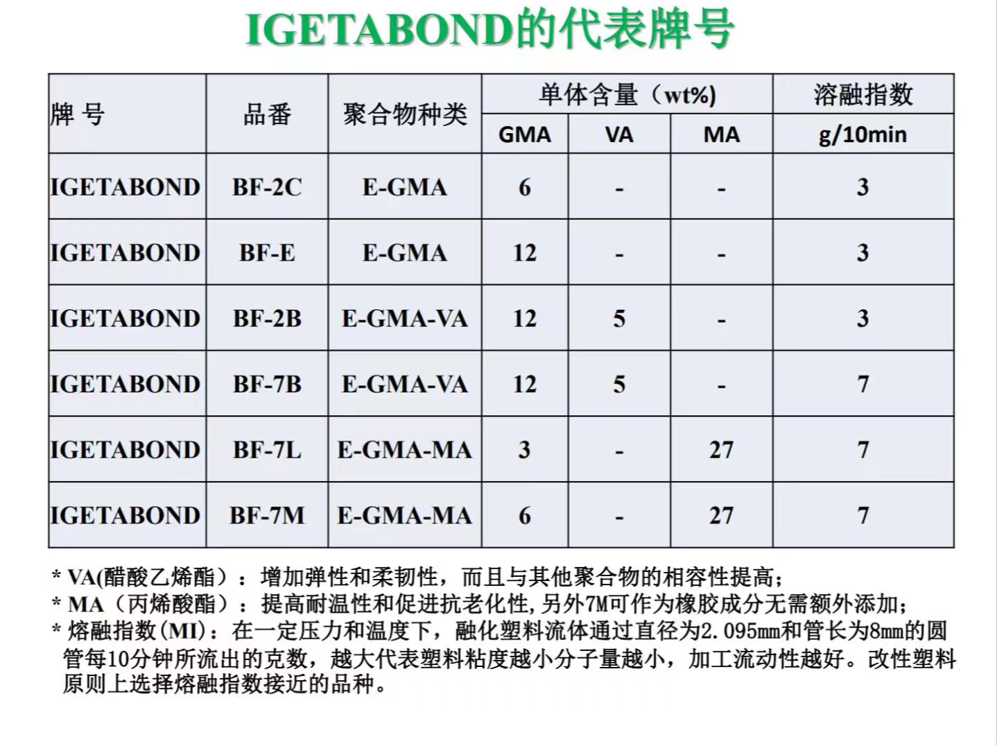 IGETABOND系列三元GMA共聚產品規格表